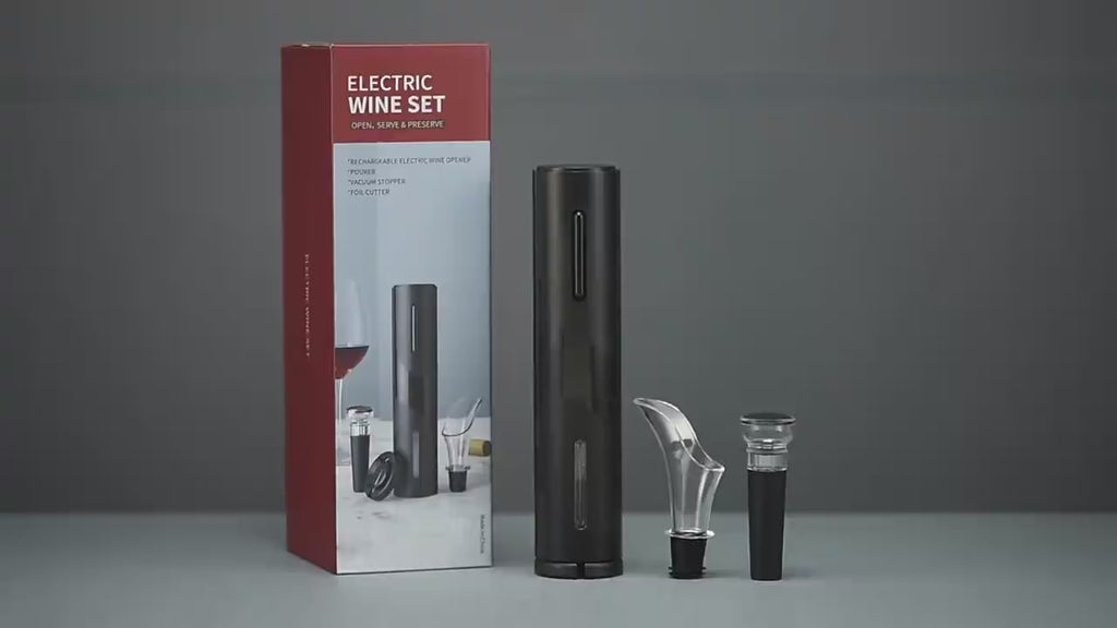 -Abridor de vinhos saca rolhas elétrico automático com cortador de lacre, recarregável com acabamento premium de alta qualidade.